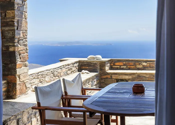 Die 4-Zimmer- Villa Blue View Mansion Tínos befindet sich ungefähr 3 Kilometer vom Agios Fokas Strand entfernt und verfügt über eine Terrasse.